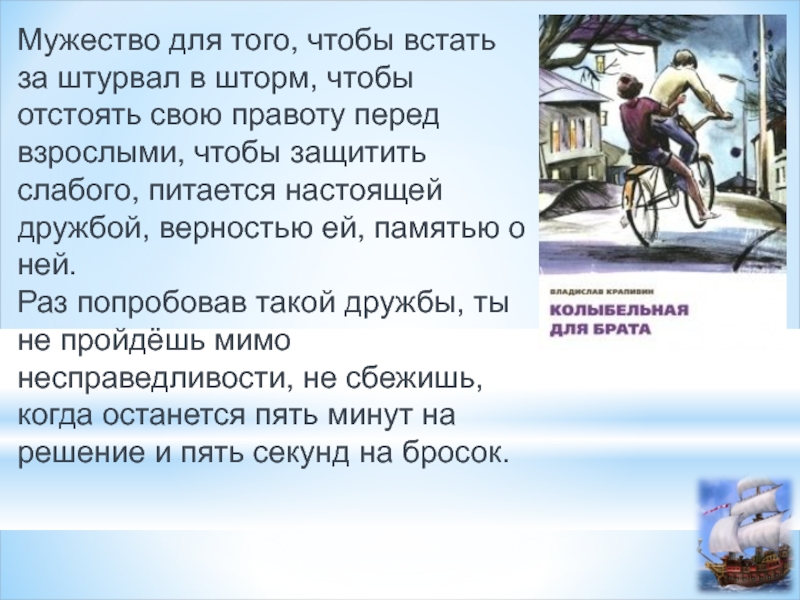 отстоять свою правоту перед взрослыми, чтобы защитить слабого, питается настоящей дружбой, верностью ей, памятью о ней.