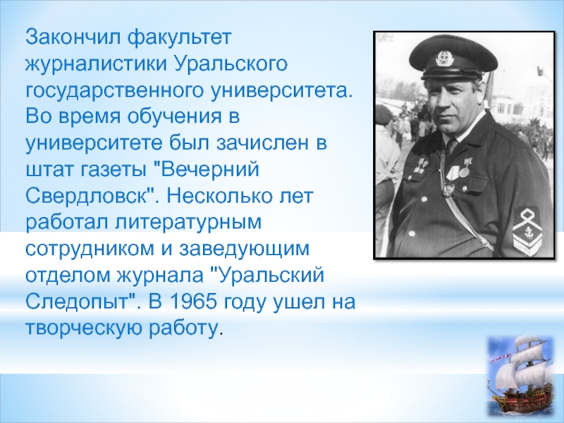 Слайд 3Закончил факультет журналистики Уральского государственного университета. Во время обучения в университете