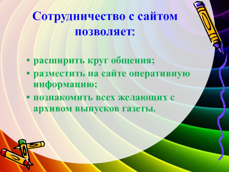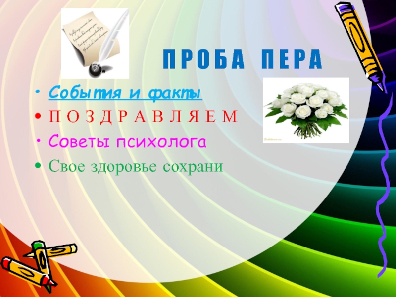 Это сайт презентаций, где можно хранить и обмениваться своими презентациями, докладами, проектами, шаблонами в формате PowerPoint с другими пользователями. Мы помогаем школьникам, студентам, учителям, преподавателям хранить и обмениваться учебными материалами.