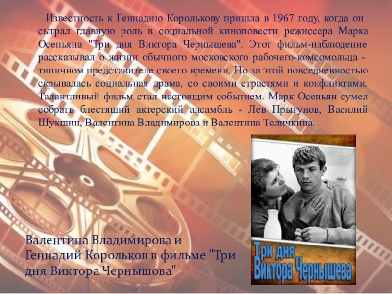 Валентина Владимирова и Геннадий Корольков в фильме "Три дня Виктора Чернышова"