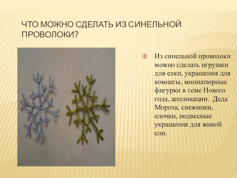 Слайд 1Игрушки к Новому году на елку из синельной проволоки своими руками