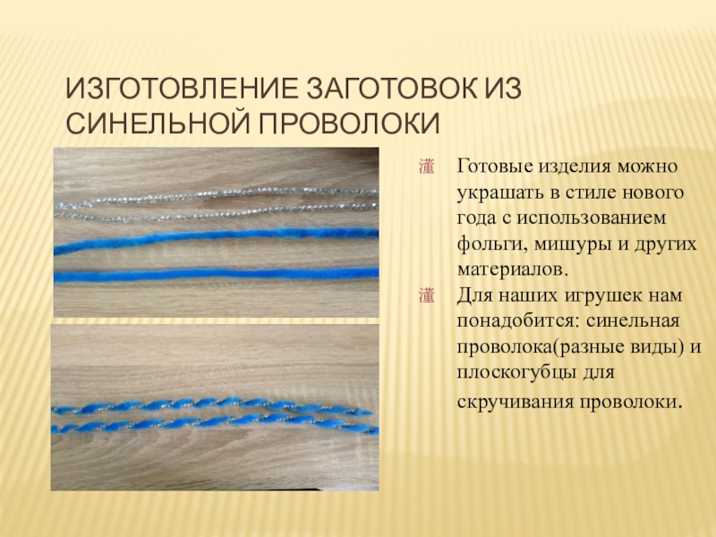 Слайд 5 Изготовление заготовок из синельной проволоки