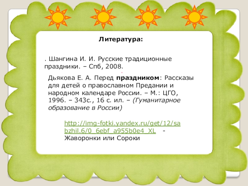 . Шангина И. И. Русские традиционные праздники. – Спб, 2008.