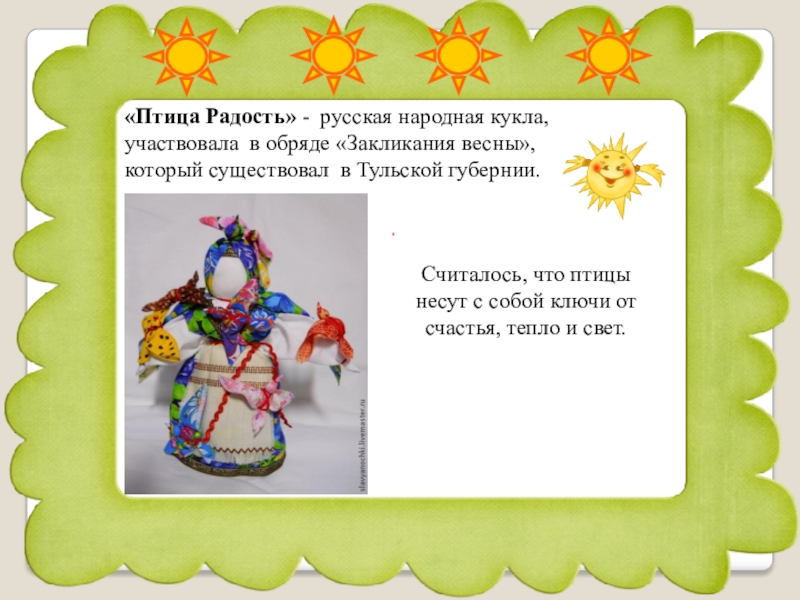 Считалось, что птицы несут с собой ключи от счастья, тепло и свет.