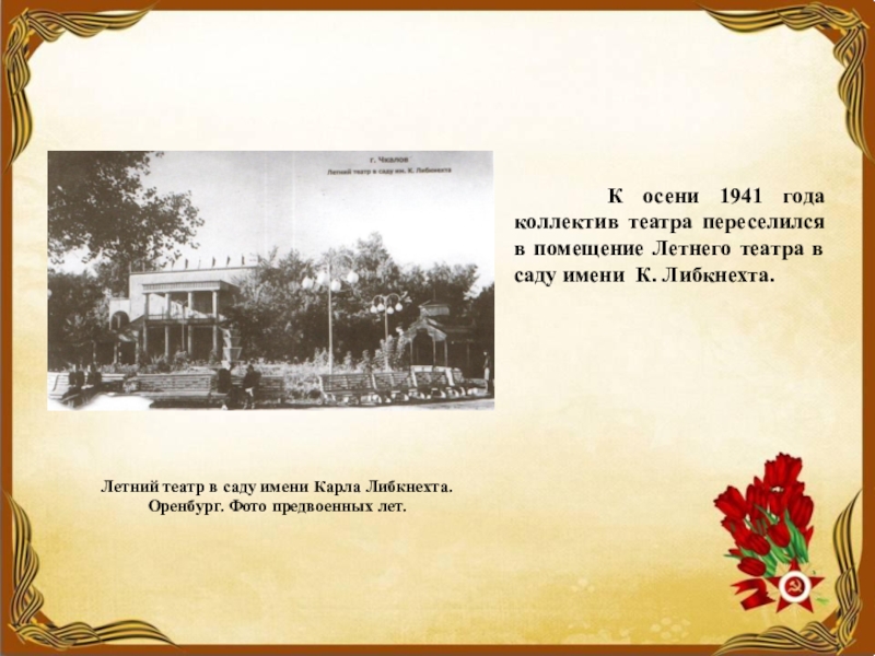 К осени 1941 года коллектив театра переселился в помещение Летнего театра в саду имени К. Либкнехта.