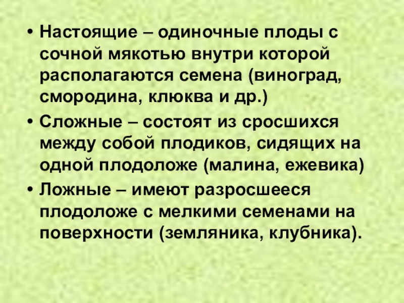 Ложные – образующиеся из разросшегося цветоложа и имеющие на поверхности маленькие косточки.