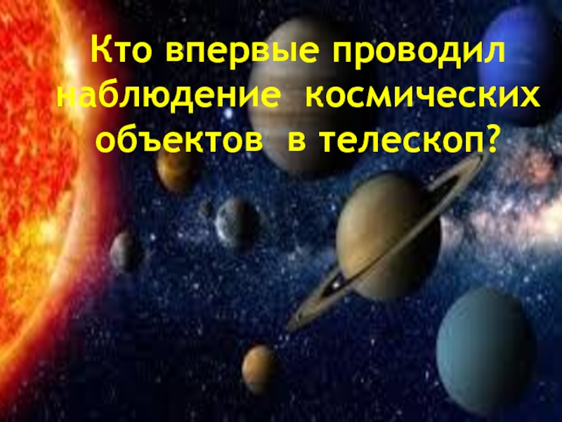 Слайд 24Кто впервые проводил наблюдение космических объектов в телескоп?