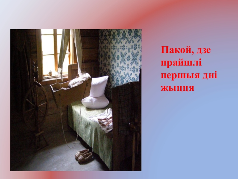 Слайд 4Пакой, дзе прайшлі першыя дні жыцця