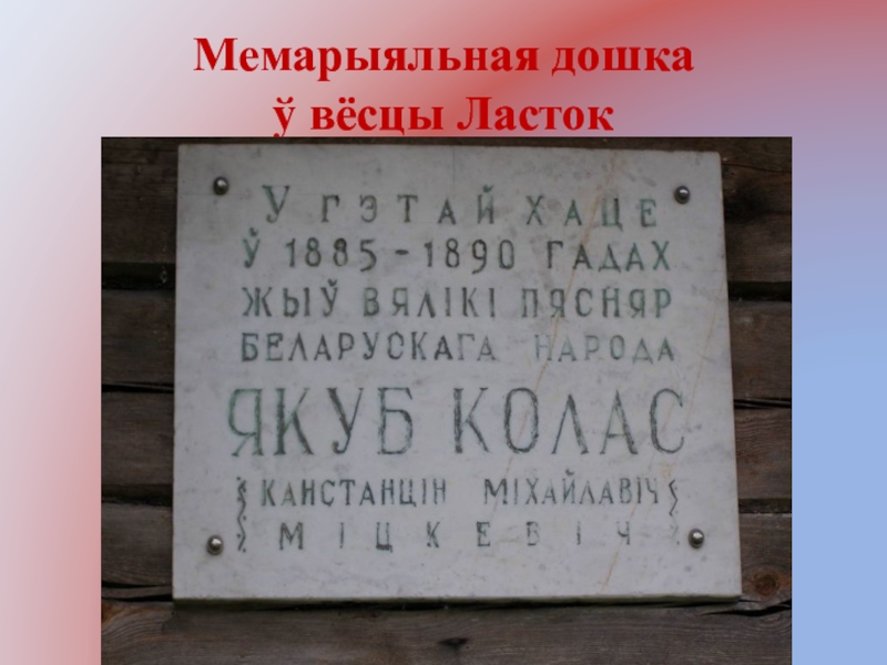 Слайд 10Мемарыяльная дошка ў вёсцы Ласток