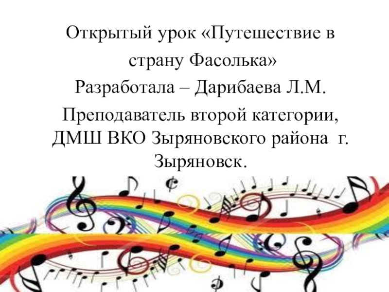 Открытый урок «Путешествие в страну Фасолька»Разработала – Дарибаева Л.М.Преподаватель второй категории, ДМШ ВКО Зыряновского района г.Зыряновск.