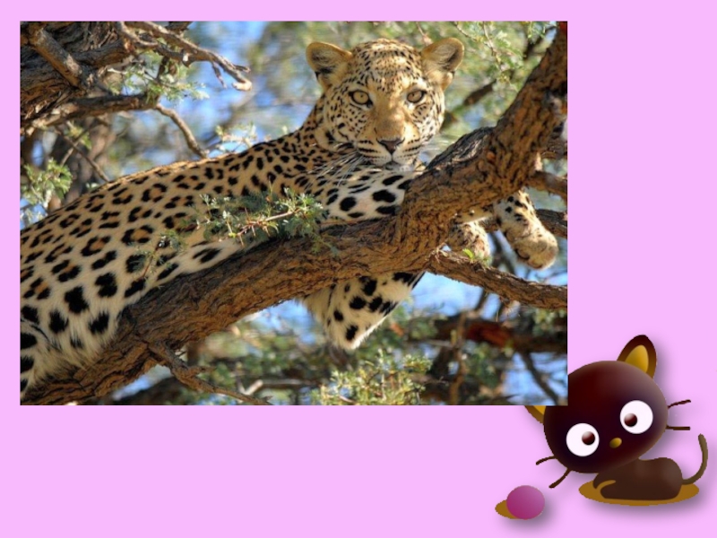 Благодаря своей пятнистой шкуре леопард почти незаметен в лесу. Есть одна существенная черта, отличающая леопардов от других больших кошек: - это привычка затаскивать добычу на дерево.