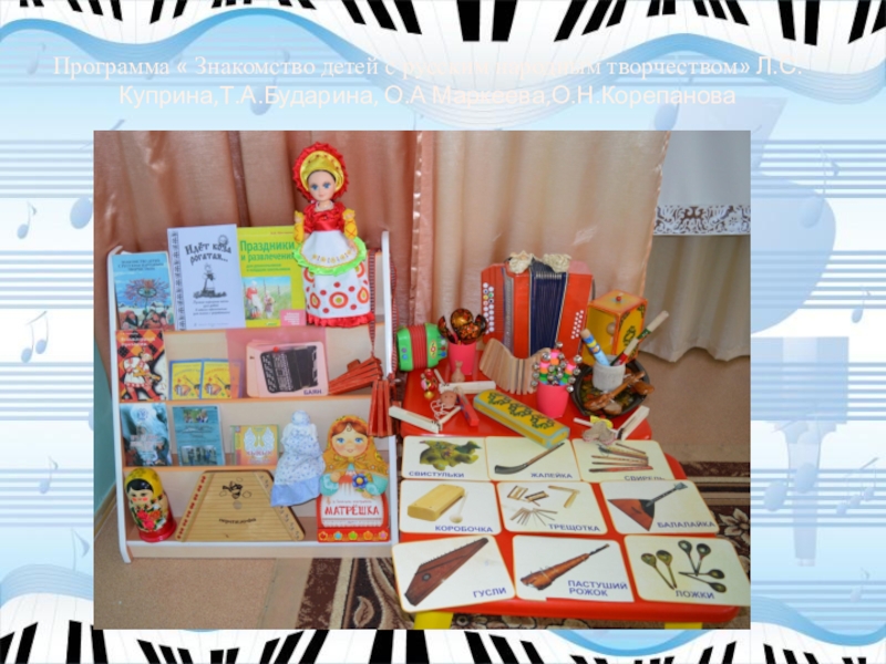 Слайд 7Программа « Знакомство детей с русским народным творчеством» Л.С.Куприна,Т.А.Бударина, О.А Маркеева,О.Н.Корепанова