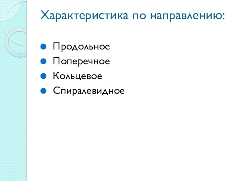 Характеристика по направлению:  Продольное Поперечное Кольцевое Спиралевидное