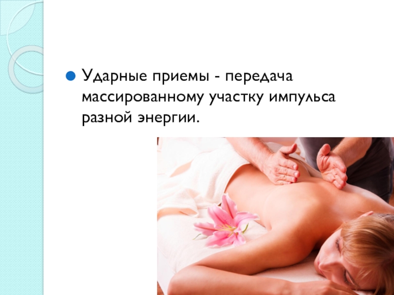 Слайд 21Ударные приемы - передача массированному участку импульса разной энергии.