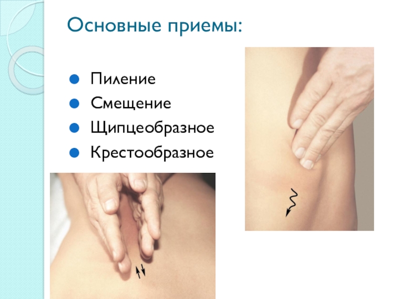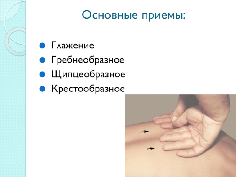 Основные приемы:  Глажение Гребнеобразное Щипцеобразное Крестообразное