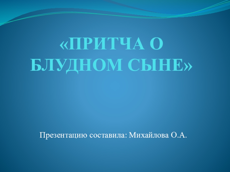 «ПРИТЧА О БЛУДНОМ СЫНЕ»Презентацию составила: Михайлова О.А.