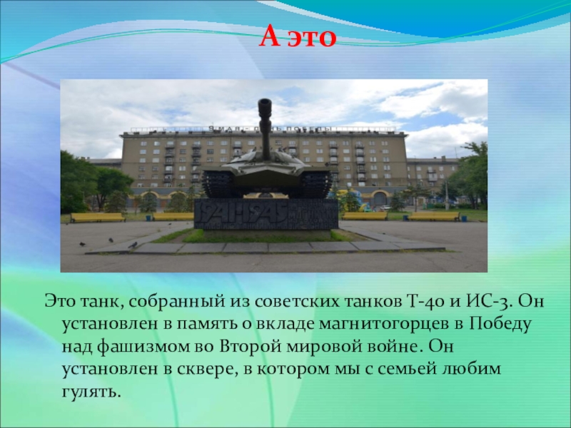Это сайт презентаций, где можно хранить и обмениваться своими презентациями, докладами, проектами, шаблонами в формате PowerPoint с другими пользователями. Мы помогаем школьникам, студентам, учителям, преподавателям хранить и обмениваться учебными материалами.