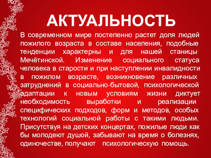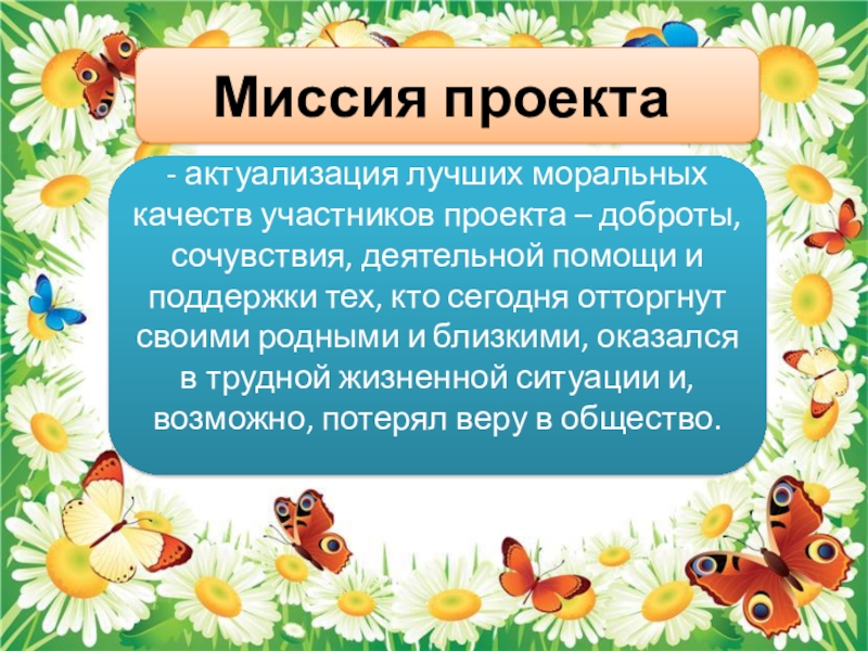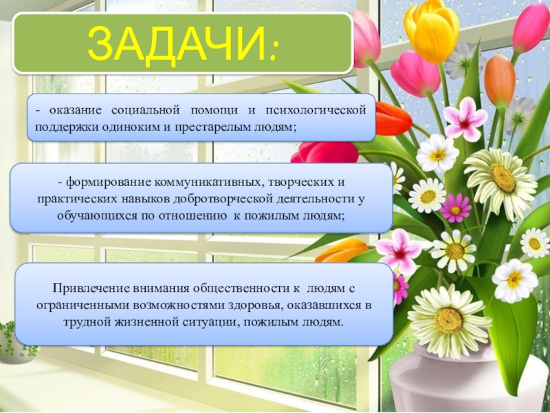 Привлечение внимания общественности к людям с ограниченными возможностями здоровья, оказавшихся в трудной жизненной ситуации, пожилым людям.