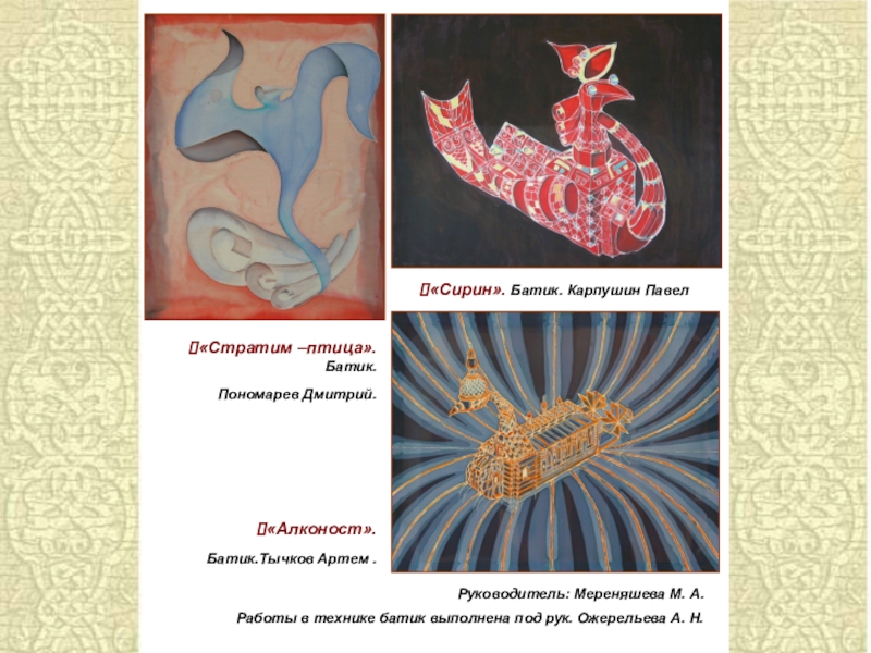 Работы в технике батик выполнена под рук. Ожерельева А. Н.