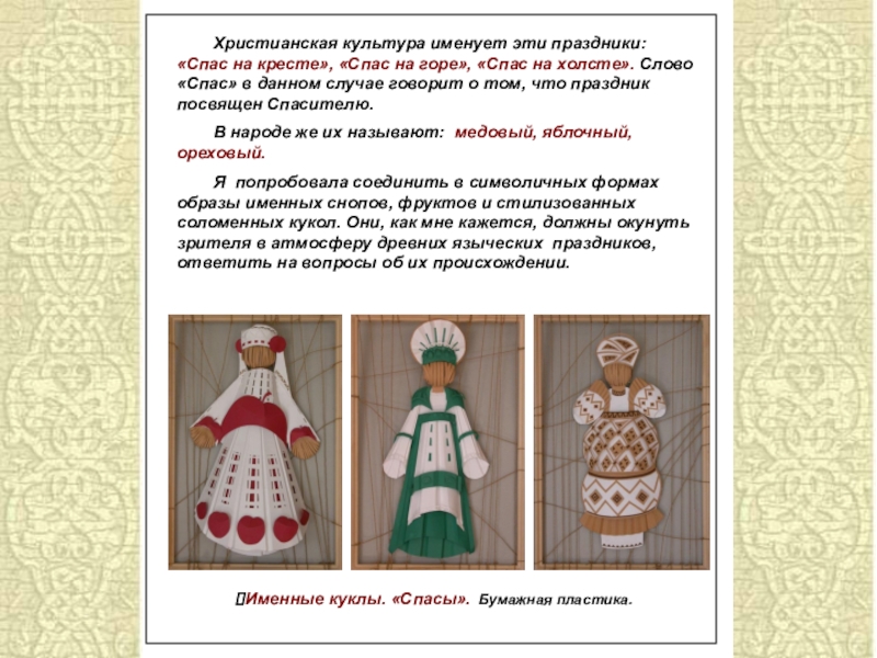 Именные куклы. «Спасы». Бумажная пластика.
