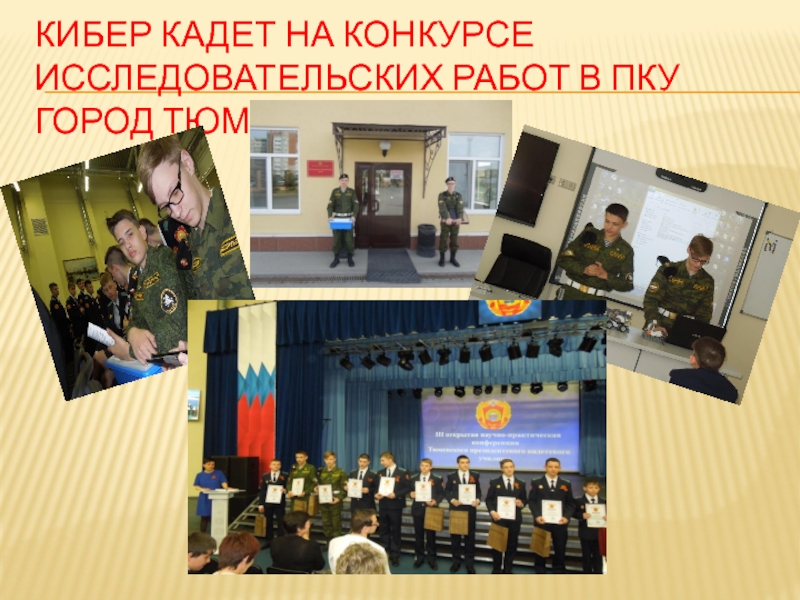 Слайд 6Кибер кадет на конкурсе исследовательских работ В ПКУ город Тюмень