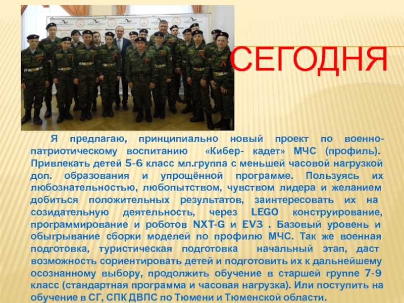 Я предлагаю, принципиально новый проект по военно-патриотическому воспитанию «Кибер- кадет» МЧС