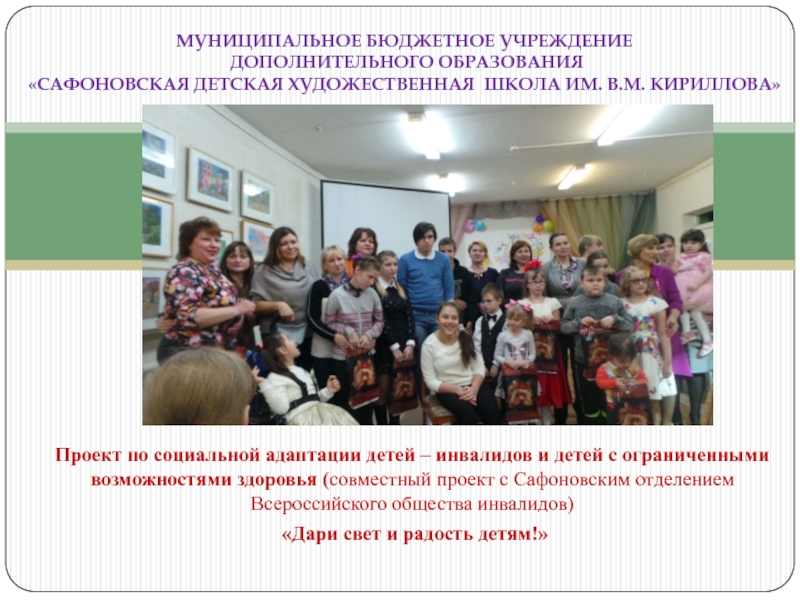 Проект по социальной адаптации детей – инвалидов и детей с ограниченными возможностями здоровья (совместный проект с Сафоновским отделением Всероссийского общества инвалидов)