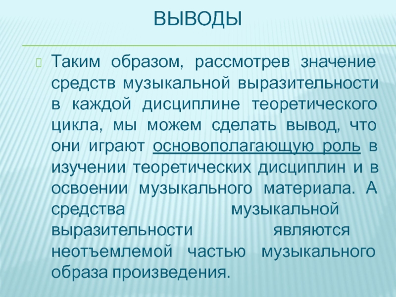Таким образом, рассмотрев значение средств музыкальной выразительности в каждой дисциплине теоретического