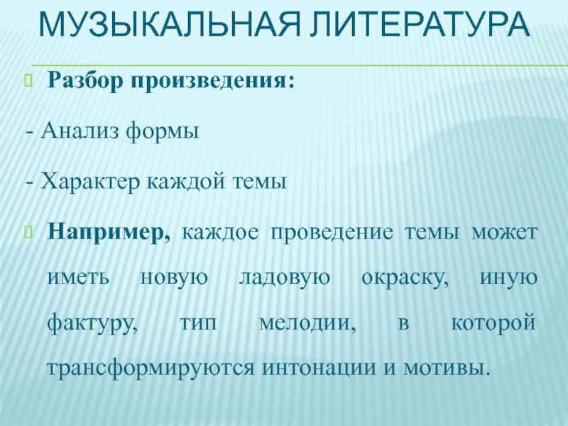 Слайд 13Музыкальная литература