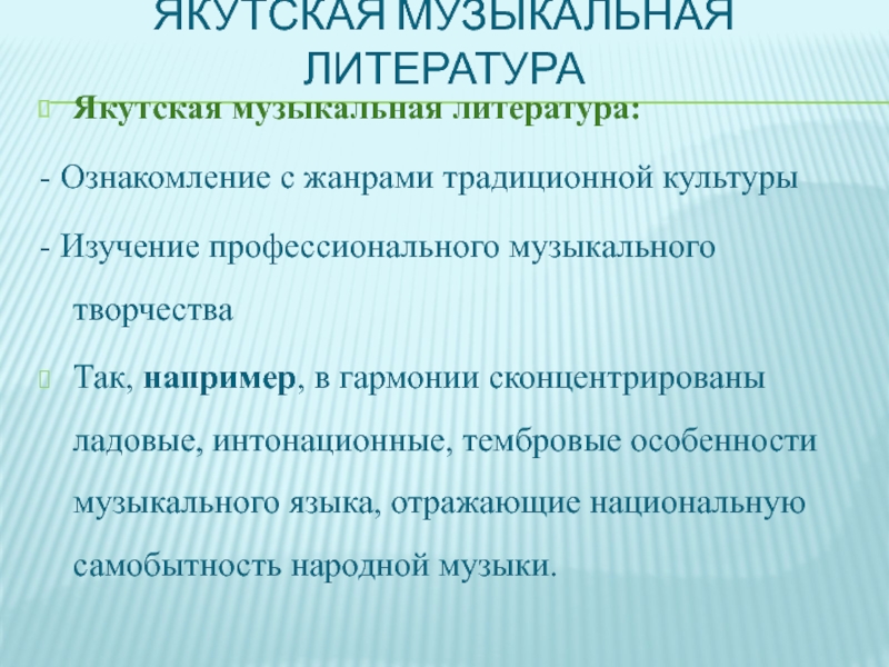 Слайд 14Якутская музыкальная литература