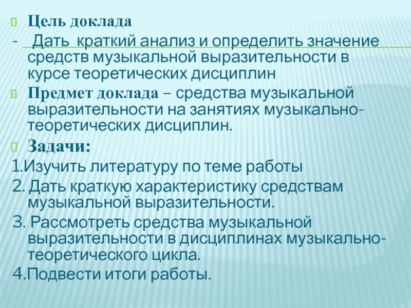 Предмет доклада – средства музыкальной выразительности на занятиях музыкально-теоретических дисциплин.