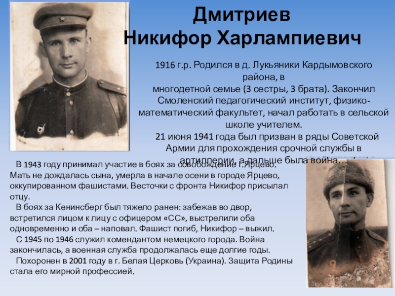 1916 г.р. Родился в д. Лукьяники Кардымовского