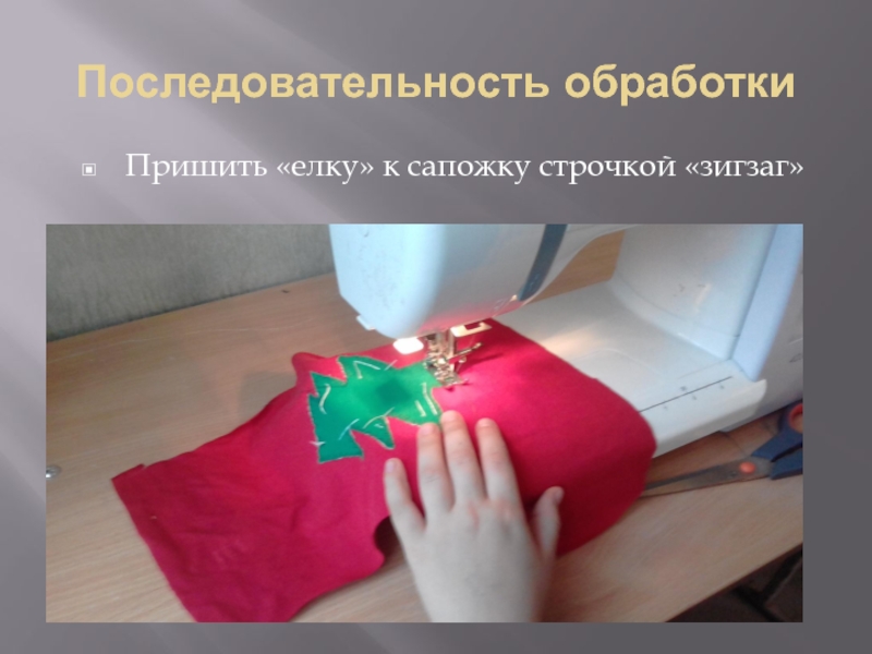 Последовательность обработкиПришить «елку» к сапожку строчкой «зигзаг»