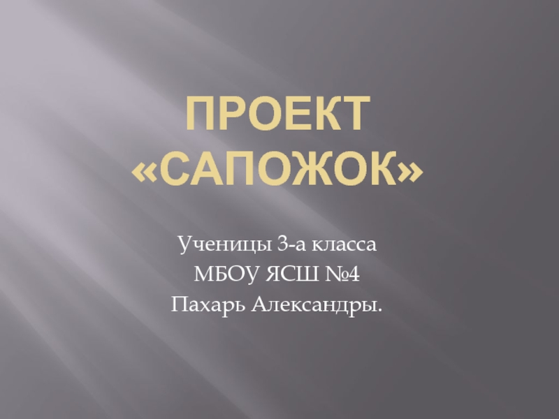 Проект «Сапожок»Ученицы 3-а классаМБОУ ЯСШ №4Пахарь Александры.