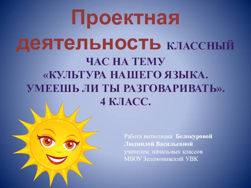 Работа выполнена Белокуровой Людмилой Васильевной
