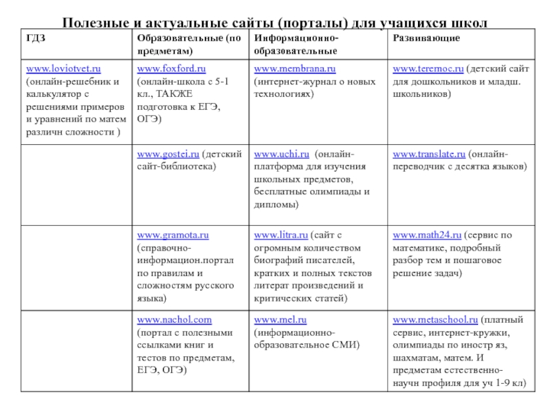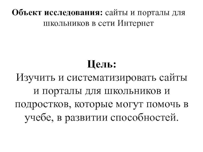 Объект исследования: сайты и порталы для школьников в сети Интернет