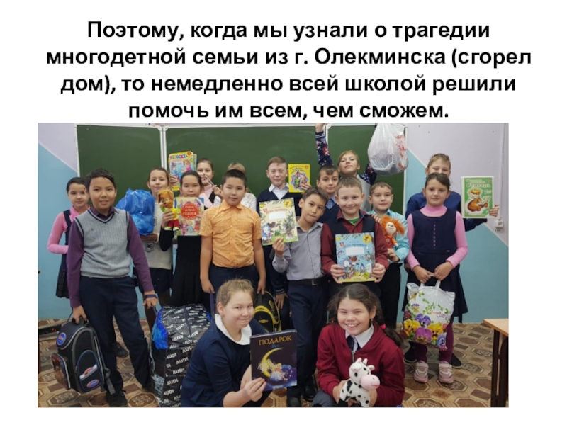 Слайд 7Поэтому, когда мы узнали о трагедии многодетной семьи из г. Олекминска