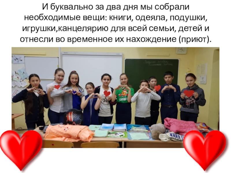 Слайд 8И буквально за два дня мы собрали необходимые вещи: книги, одеяла,