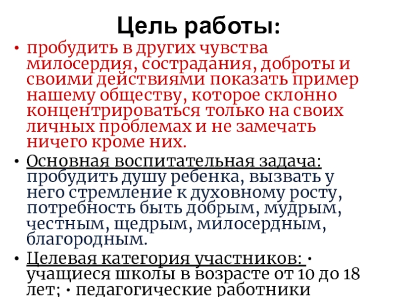 пробудить в других чувства милосердия, сострадания, доброты и своими действиями