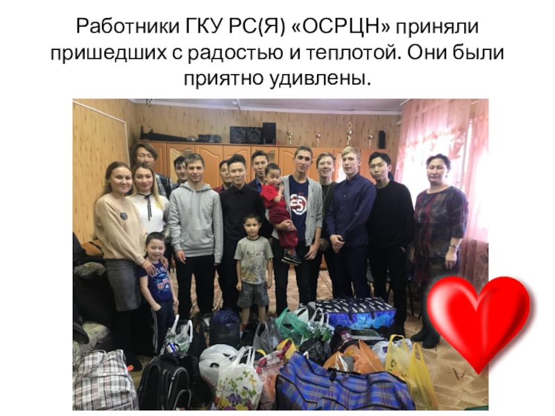 Слайд 11Работники ГКУ РС(Я) «ОСРЦН» приняли пришедших с радостью и теплотой. Они