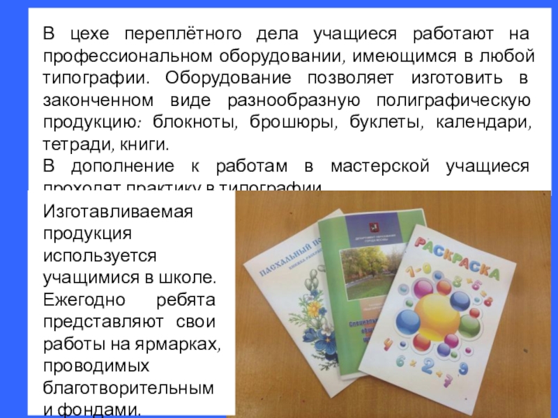 Ежегодно ребята представляют свои работы на ярмарках, проводимых благотворительными фондами.