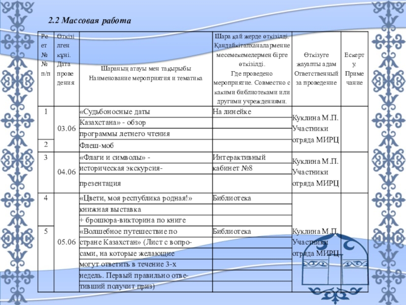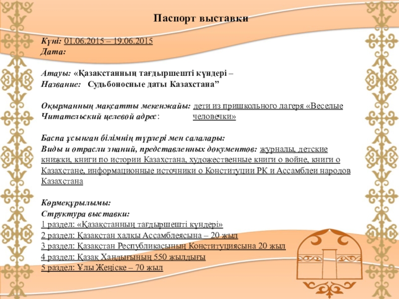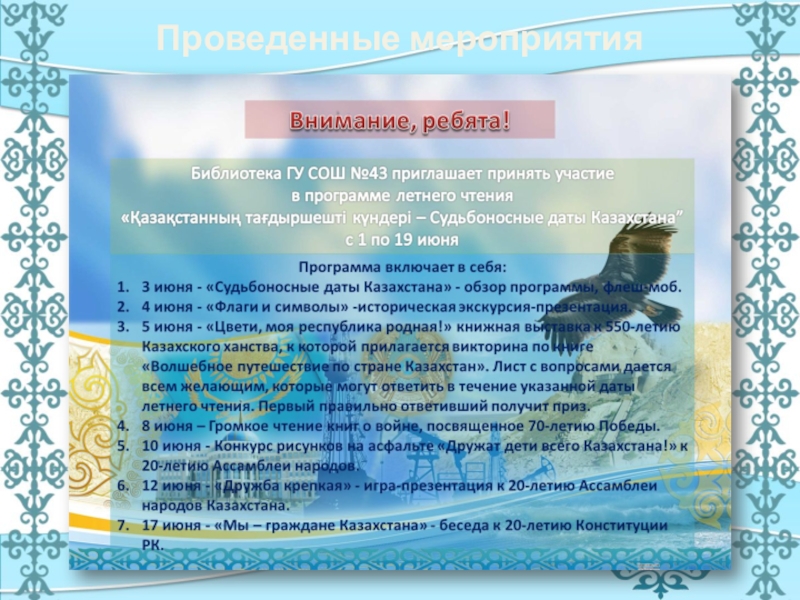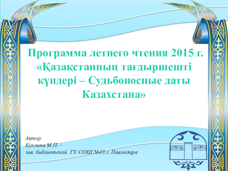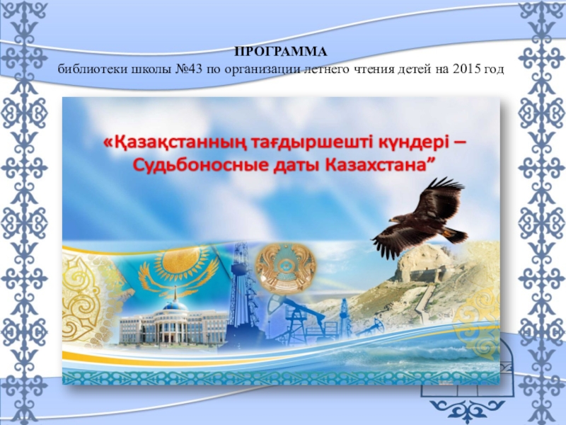 Слайд 1Программа летнего чтения 2015 г. «Қазақстанның тағдыршешті күндері – Судьбоносные даты