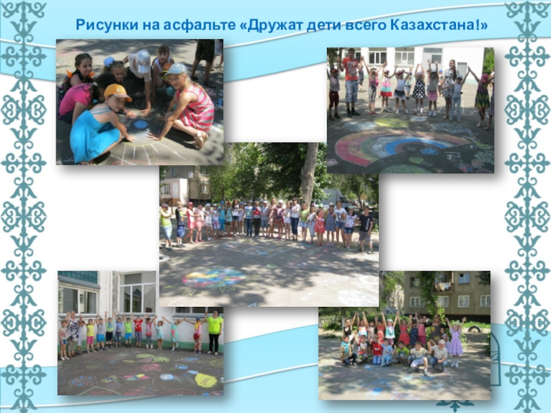 Слайд 25Рисунки на асфальте «Дружат дети всего Казахстана!»