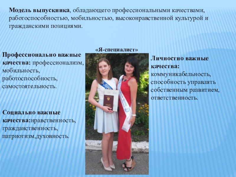 Личностно важные качества: коммуникабельность, способность управлять собственным развитием, ответственность.