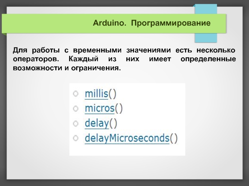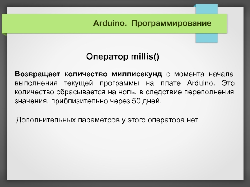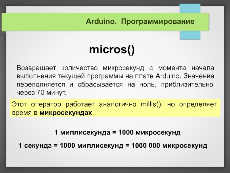 Этот оператор работает аналогично millis(), но определяет время в микросекундах