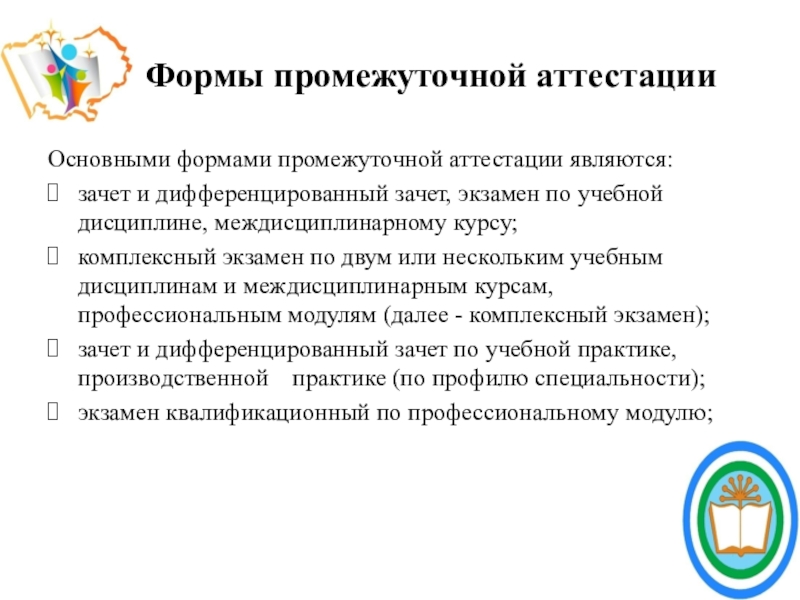 и дифференцированный зачет, экзамен по учебной дисциплине, междисциплинарному курсу;