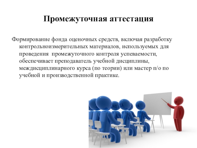 проведения промежуточного контроля успеваемости, обеспечивает преподаватель учебной дисциплины, междисциплинарного курса (по теории) или мастер п/о по учебной и производственной практике.