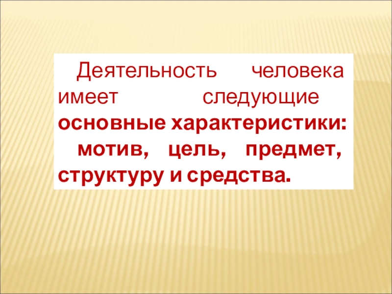 Слайд 6Деятельность человека имеет следующие основные характеристики:
