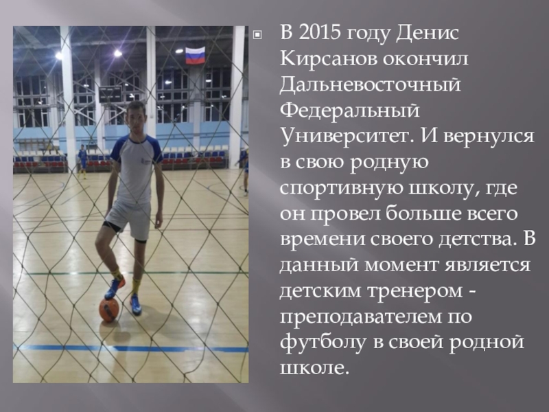 Слайд 6В 2015 году Денис Кирсанов окончил Дальневосточный Федеральный Университет. И вернулся