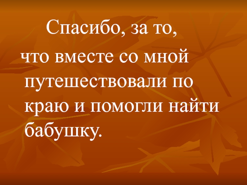 Спасибо, за то, что вместе со мной путешествовали по краю и помогли найти бабушку.